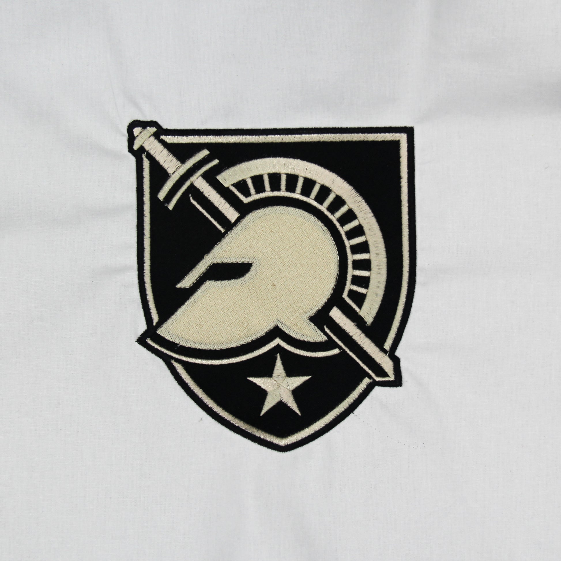 Beautiful 10 inch Embroidered West Point Military Academy Quilt Block. These are exactly the same blocks I use to make quilts and throw pillows you see on this site. You can too. These logos are embroidered on white high quality quilting fabric. Most of them have 20,000 to 30,000 stitches and take over two hours to stitch out. If you look at the blocks on the quilts you will be able to have a better understanding of the size of the embroidery on the block. Satisfaction guaranteed.